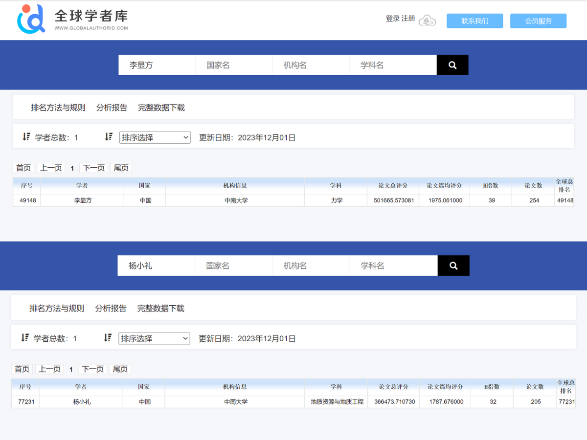 公司李显方教授、杨小礼教授入选2023全球学者终身学术影响力榜