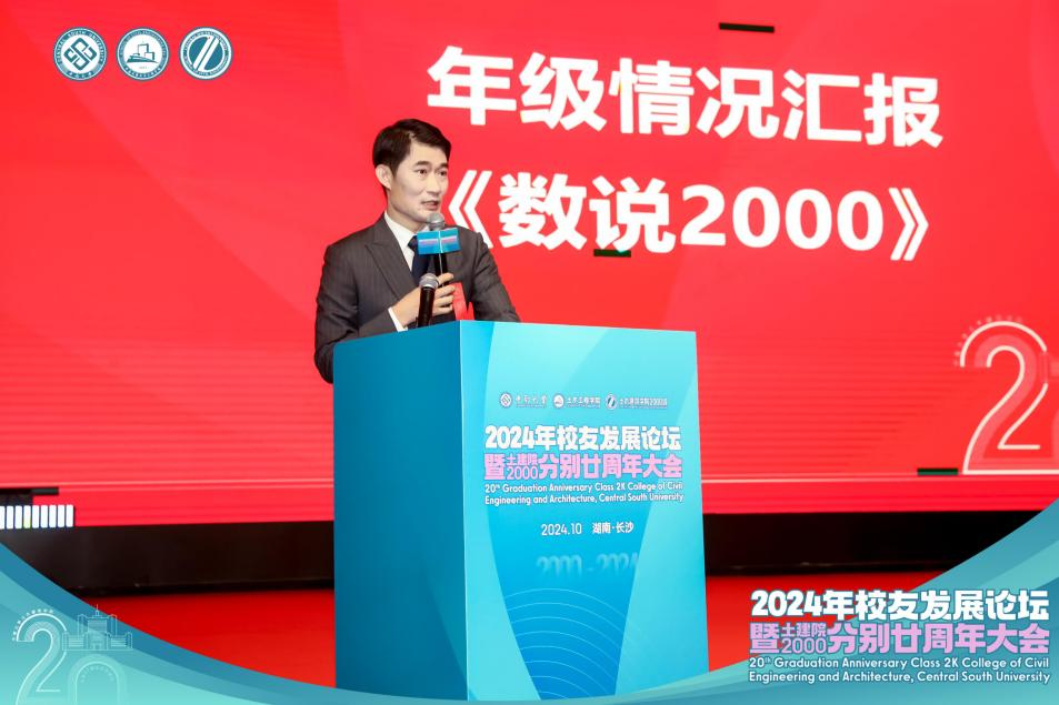 2000级土木工程专业员工周涛代表本次大会筹备组进行了《数说2000》的汇报,从事业发展、家庭建设、成长收获等方面,对20年来2000级员工发展状况进行分析和总结,并表达了员工对母校的美好祝福。