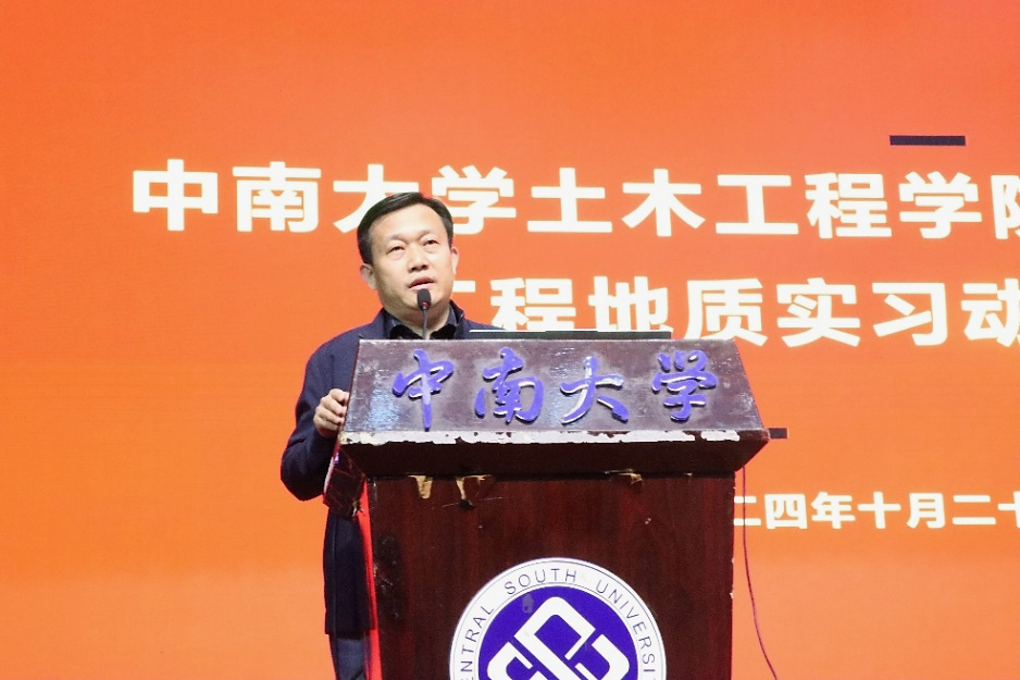 最后,学院副经理乔世范作总结发言。他指出工程地质实习是公司本科培养环节中不可或缺的一部分,学院精心组织、带队教师全程指导、员工全员参与,是非常珍贵的实践机会。叮嘱同学们要把安全放在第一位,外出严格履行请假手续,做到一切行动听指挥,认真完成各项要求。勉励同学们珍惜实习时光,在实习过程中多观察、多思考、多分析、多记录,切实锻炼工程实践能力,努力成长为堪当民族复兴重任的时代新人,并预祝本次工程地质实习取得圆满成功。