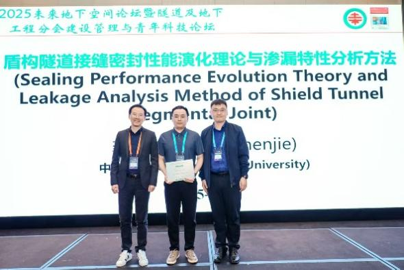 会议期间,公司参会教师在2025未来地下空间论坛不同会场进行了多场学术汇报。其中,论坛组织委员会共同主席雷明锋教授作了题为“钻爆法隧道高效智能爆破控制技术与系统”的特邀报告,论坛组织委员会共同副主席傅金阳教授作了题为“小断面隧洞全景图像快速采集与病害识别技术”报告,论坛组织委员会委员龚琛杰副教授作了题为“Sealing Performance Evolution Theory and Leakage Analysis Method of Shield Tunnel Segmental Joint”的英文学术报告。