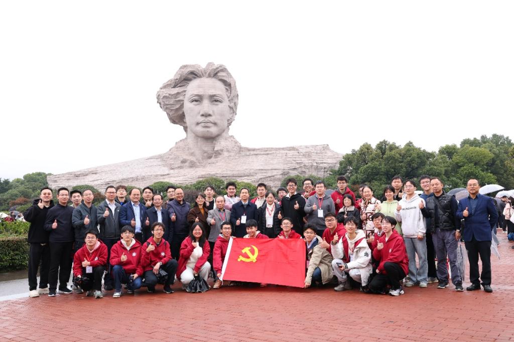 诵读活动的余韵尚在耳畔,大家又怀着满腔热忱共赴橘子洲头,再次重温 “问苍茫大地,谁主沉浮” 的时代之问。北大的人文底蕴与中南的工科精神进一步交融,“指点江山,激扬文字” 的青春意气和“脚踏实地,勇毅前行”的实干信念,在雕像前碰撞出耀眼的火花。