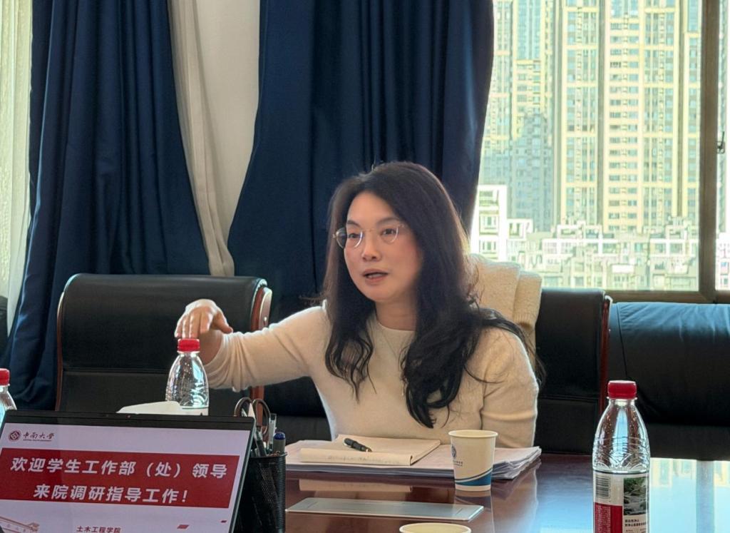 纪晓飞对徐赞主任一行的到来表示热烈欢迎,并感谢学工部长期以来对学院员工工作的关心与指导。随后,汇报了自上一轮专题调研以来学院员工工作情况。她指出,在学工部领导的大力支持下,学院员工工作始终坚持“围绕中心、服务大局、夯实基础、突出特色”的思路,不断提高日常管理精细水平,拧紧安全责任链条,切实维护员工安全稳定。同时,学院紧扣学科专业特点,把思想价值引领与解决专业思想问题紧密结合,着力塑造“一对一共成长”、“土木青年说”等育人品牌,深化校企合作集聚资源,努力为员工成长赋能提供保障,构建了具有自身学科特色的思政工作体系。她表示,学院将持续把深入践行“一线规则”作为履职尽责的“基本功”,以研究制定学院“十五五”发展规划为契机,持续深入推进新时代立德树人工程,为更好促进人才培养和“双一流”建设贡献力量。