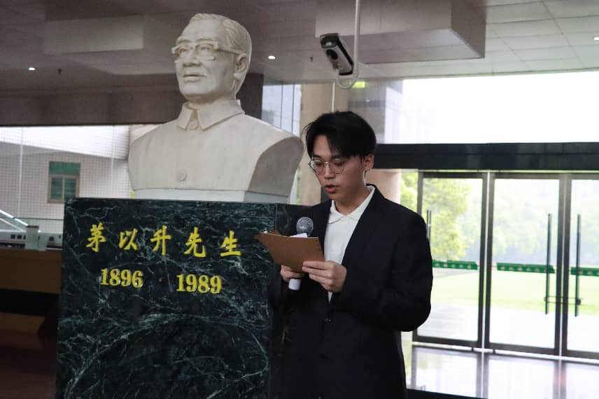 随后,员工代表在雕像旁发言,结合自身学习与生活实际,分享了对茅老精神品格的理解与感悟。该同学表示,作为新时代土木学子,应以茅以升先生为榜样,坚定理想信念,夯实专业基础,锤炼过硬本领;要把个人成长融入国家发展需要,在学习、科研和实践中践行“爱国、科学、奋斗、奉献”的精神内核,努力成长为堪当民族复兴重任的栋梁之才。