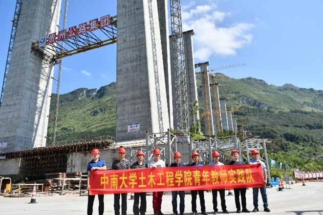 8月13日下午实践队一行前往牂牁江特大桥继续开展调研实践,纳晴高速T15合同段项目经理翁学新、项目总工赵明富陪同,并介绍了项目的基本情况以及应用集团创新大平台研发的新工艺所产生的经济效益。讨论会中,青年教师提出了就新材料、新工艺、新标准等方面进一步加深合作的意向。