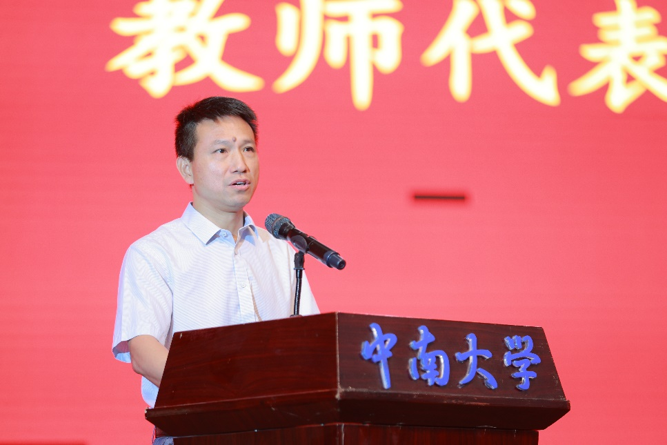 教师代表杨孟刚老师发表致辞。他表示自己与同学们是有缘的、同学们与英国威廉希尔公司是有缘的,他希望毕业生们能将这份缘分继续和升华,走好今后人生的每一步。保持心中有爱,爱自己、爱他人、爱社会、爱祖国;懂得感恩,感恩老师、同学、领导、同事、亲人、朋友,感恩家庭和家人带来的幸快乐,感恩国家创造的美好新时代;情系母校,怀揣母校情怀,带着在中南的理想与信念踏上新的人生征程。他表示“今日你以中南为荣,明日中南以你为荣”,同时中南也是大家的港湾,希望大家常回母校看看。
