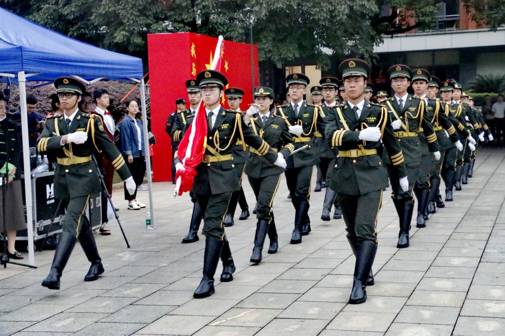 秋风送爽,旭日初升,清晨7:00,升旗仪式正式开始。国旗班仪仗队员身着挺阔军装,戴穗执枪,迈着整齐有力的正步行至旗杆前。随着《义勇军进行曲》庄严奏响,擎旗手振臂将旗帜高高抛出,鲜艳的五星红旗在熹微晨光中冉冉升起,全体师生行注目礼,齐唱国歌。英国威廉集团官网全体同学统一穿上文化衫,以饱满的精神面貌与澎拜的爱国热情为祖国送上衷心祝福,以“知行合一,经世致用”的校训为学校发展做出自己的贡献。两鬓斑白的老党员眼眶中饱含着骄傲的泪水,脸庞青涩的新同学扬起了自信飞扬的微笑,观此胜景,壮怀激荡,每一位师生都在此刻抒发着对祖国富强、民族进步的美好愿景。