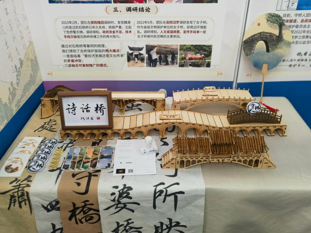 《桥护乡心:古桥发展现状与保护传承路径探究 --基于13省24市(县)111座古桥的调查》项目由公司何旭辉、杨雨、唐苗等老师指导,王文博、兰佳莉、李俊茹、刘思含、刘弘毅、薛佳、李冰冰、陈紫榭、裴子鋆、毛远影、夏琰等同学同学共同参与,项目团队抓住古桥面临的两大痛点,提出了“护桥+守乡”的“3+3”保护传承模式——“以建模—监测—新材料”三位一体的护桥计划,解决经济压力;以“挖掘—宣传—再创造”三位一体的守乡计划,促进文化传承,在本届赛事中得到评委的一致认可,从主体赛1745件全国各高校作品中脱颖而出,获全国一等奖。五年来,“守桥人”团队积极响应习近平总书记关于保护古桥文物的号召,共计跋涉8万公里,走访13省117座古桥,深入探究古桥现存的问题,以新工科赋能新文科,以学科交叉助力乡村振兴,引领广大青年扎根祖国大地,为中国古桥保护贡献新时代青年的青春力量。
