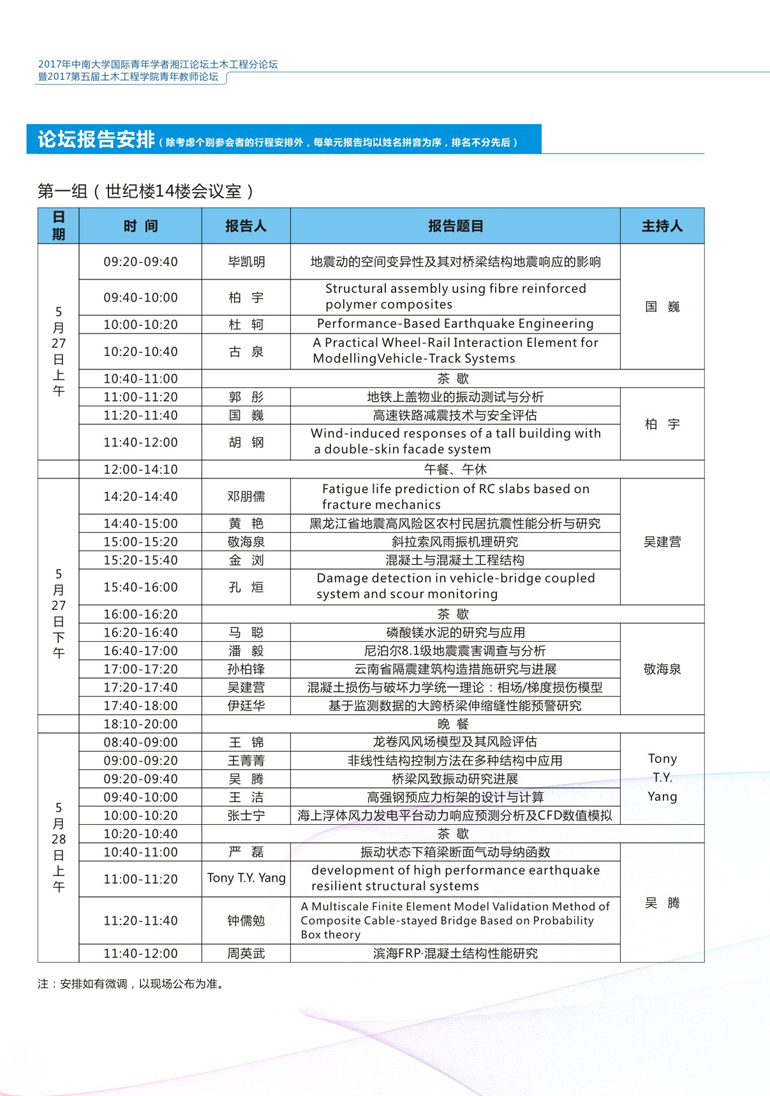 报告题目:2017年英国威廉希尔公司国际青年学者湘江论坛土木工程分论坛暨2017第五届英国威廉集团官网青年教师论坛