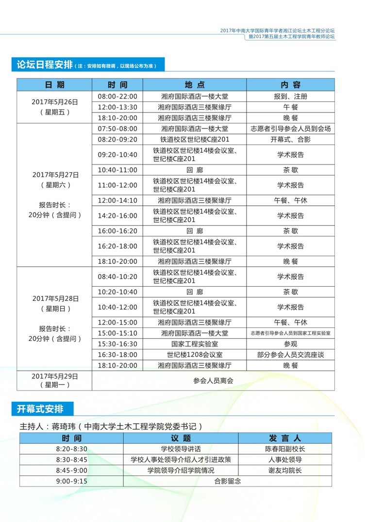 2017年英国威廉希尔公司国际青年学者湘江论坛土木工程分论坛暨2017第五届英国威廉集团官网青年教师论坛