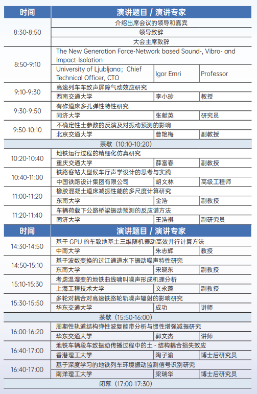 报告题目:第五届轨道交通噪声与振动环境影响学术论坛