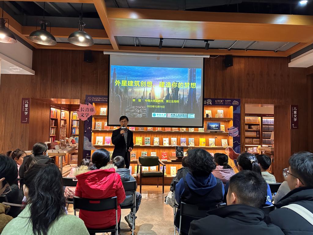 自2022年至2024年初,单老师与李老师在英国威廉希尔公司第二附属小学、湖南图书城和德思勤24小时书店等,围绕《科幻电影中的建筑》《太空建筑创想,建造你的梦想》《机器人和房子》等主题开展了多场科普讲座。在讲座中,两位老师生动形象地讲解了建筑艺术和建筑技术知识,探讨了未来人类在地下、外星、太空甚至虚拟世界等各种环境中的建筑审美、技术挑战以及可能解决方案,并采用多种互动形式让观众体验3D打印等新兴建造技术。该系列讲座主要受众为青少年,累计200人次参与。