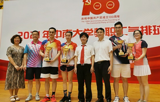 教职工气排球比赛在校工会领导的见证和强力组织下逐渐落下帷幕,公司男女排队员代表公司获颁各个奖项,队员们拼搏进取,团结奋进的精神也受到了校工会部门领导的认可、肯定和表彰。队员们纷纷表示,希望工会组织更多类似团体比赛项目,切实增强教师们利于科研生产工作之余时间充分锻炼身体,增强学院教职工凝聚力和向心力,以优异成绩庆祝中国共产党成立100周年。