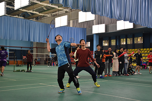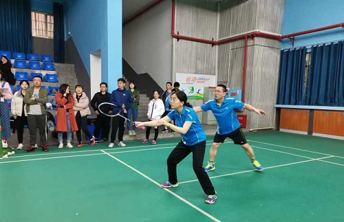 四强阶段,精彩继续。经理何旭辉和副经理易亮共同代表机关队对阵工程管理系联袂上演了一场“男双”精彩对决,起球、吊球、杀球、旋转360°回球,教师们使出浑身解数,犹如一场“饕餮盛宴”,看得观众直呼过瘾。