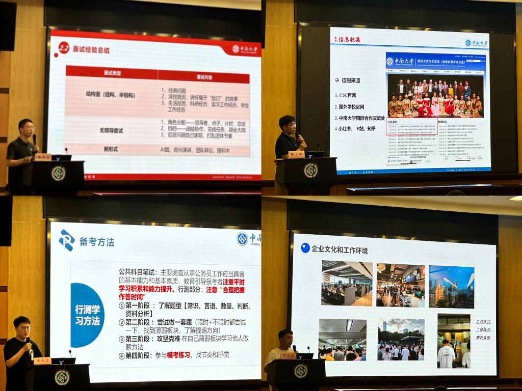 杨佳宝为大家详细介绍了自己在中建国际成功入职的经历以及面试技巧。他从求职规划的策略出发,详细解析了面试的多种形式,包括结构化面试、无领导小组面试以及一些新兴的面试方式技巧。周明桥在交流会中讲述了他在软件开发领域的职业拓展经历。他从秋招的策略、技术技能的学习,以及在新领域中积累的工作经验等多个角度,为在座的学弟学妹们提供了丰富的见解和建议,帮助他们在职业规划上看到更广阔的可能性。