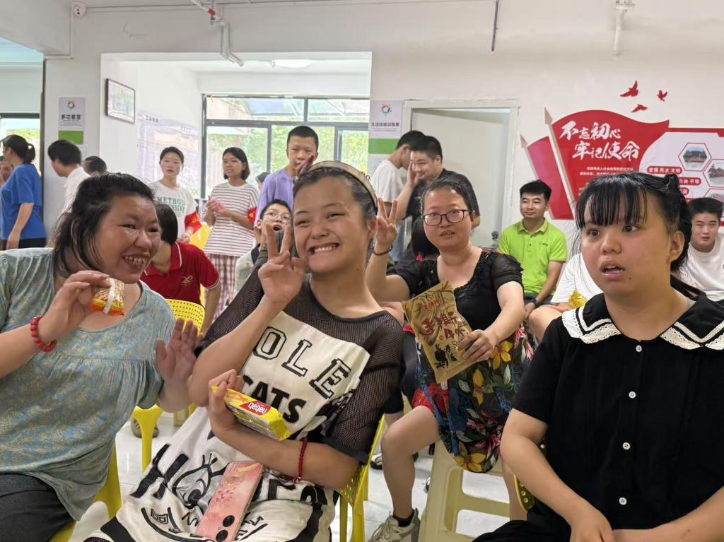 首先是由志愿者们给学员带来一首小舞蹈,学员们在台下热烈的回应着、欢呼着,好不热闹!歌声回荡,掌声不断。随后进行的手语操和早操展示中,大家的动作稍显“笨拙”,有的学员为了跟上节奏,紧紧盯着前排志愿者的背影,手指跟着轻轻比划,每一个极其认真的态度无疑打动着在场的所有人。到了"积分大作战"环节,首个游戏"击鼓传花"点燃了现场气氛——音乐随机暂停时,接到"花"的学员或表演才艺,或分享故事。
