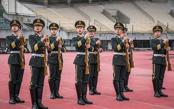 秋原如掌,枪刀突出;星驰铁骑,阵势纵横。拳打、脚踢、摔拿、拧夺,教官为初出茅庐的新兵们展示了军体拳,飒爽英姿利落似风,动作招式迅猛如雷,引得台下掌声喝彩此起彼伏。军人是国防边疆的第一道防线,是国际外交的底牌与奠基,是和平年代负重前行的无名英雄。在教官气势澎湃的展示中,同学们看到了自己模仿和学习的榜样,明确了军训磨砺和锤炼的目标,怀着更刚毅的意志与坚定的信念迈上训练场。
