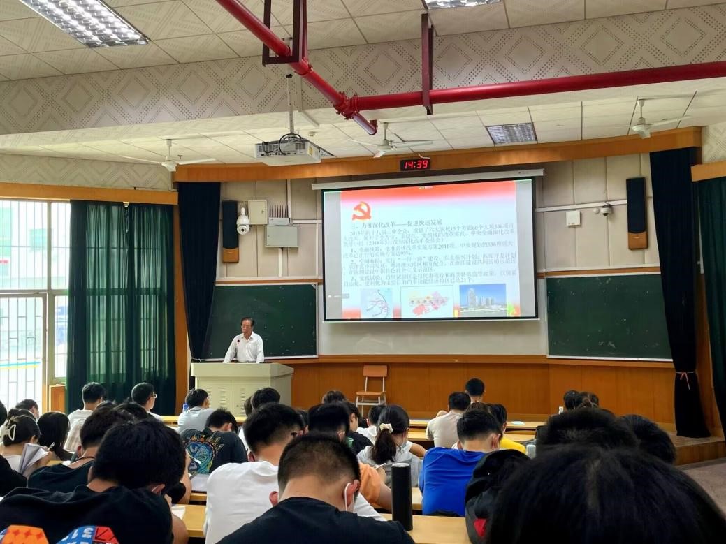 随后,张国强老师特别围绕九个方面向大家讲解了党的二十大报告,号召同学们结合新时代党的国家事业取得的伟大成就,完整准确全面学习领会党的二十大精神,深入理解内涵,精准把握外延,原原本本、逐字逐句学习党的二十大报告和党章。
