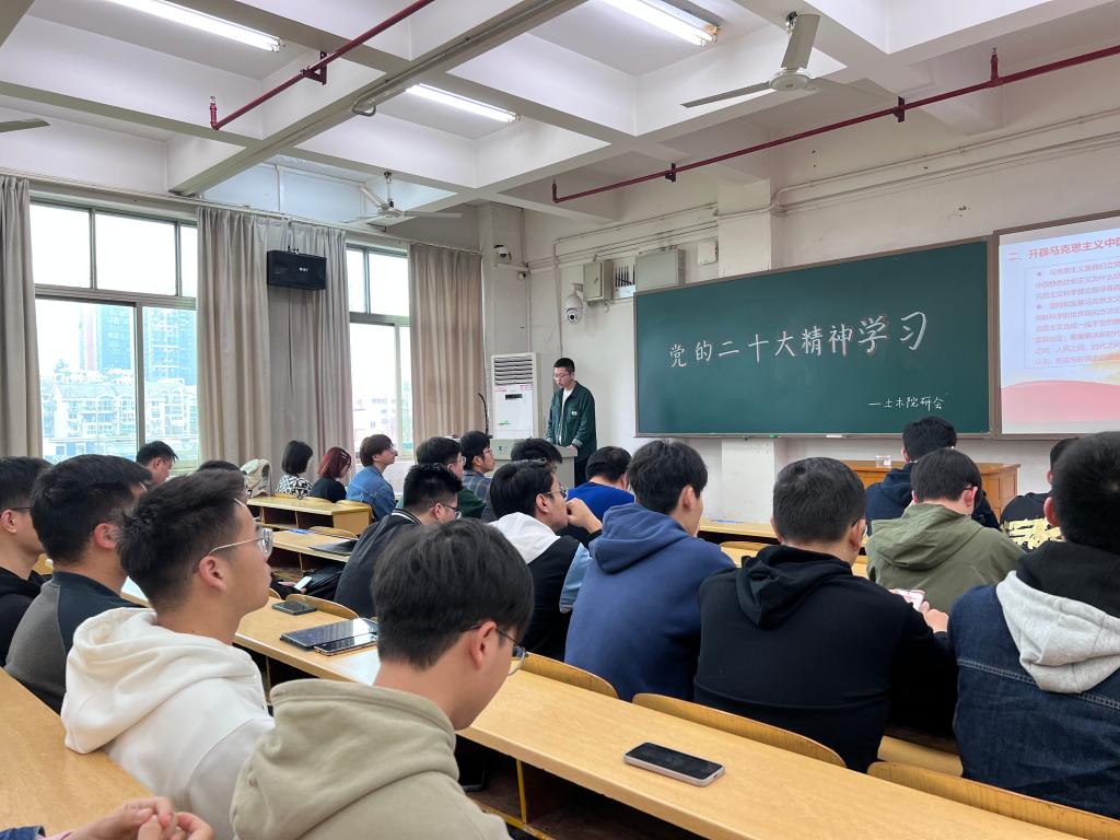 第一阶段,研究生会主席杨佳宝紧紧围绕党的二十大精神,以《牢记嘱托,不负使命——关于党的二十大精神的认识和体会》为题带领研究生会成员回顾了党的二十大报告的主要内容。他表示,作为研究生会工作人员,要用党的科学理论武装头脑,坚定不移听党话、跟党走,在新征程上跑出更好的成绩。