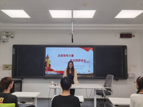 随后,支部书记简润为支部同志们讲授了“汲取信仰力量,坚定理想信念”的党课。党课中提到,走得再远,也不能忘记来时的路,引出本次党课的重要主题——不忘初心。简润老师指出支部全体同志应更加重视理论学习,注重用党的奋斗历程和伟大成就鼓舞斗志、明确方向、汲取力量。号召同志们在实践活动中坚守理想信念,立志做有理想、敢担当、能吃苦、肯奋斗的新时代好青年。
