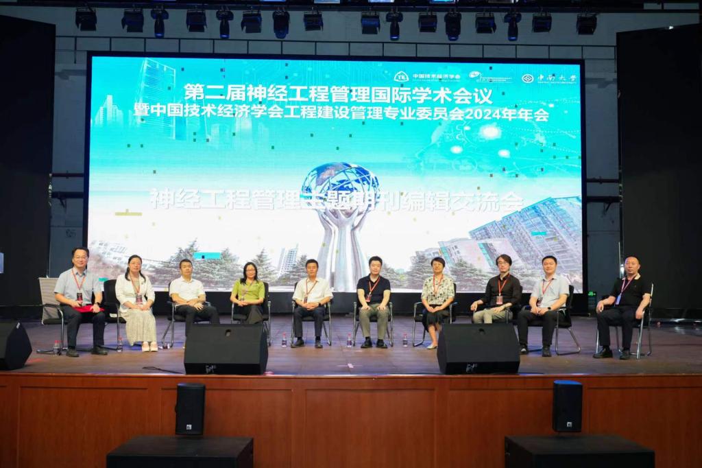 6月2日上午主旨报告之后,东南大学李德智教授主持了神经工程管理主题期刊编辑交流会,期刊包括:《铁道科学与工程学报》《International Journal of Construction Management》《项目管理技术》《Automation in Construction》《Journal of Intelligent Construction》《Advanced Engineering Informatics》《Safety Science》《Environment, Development and Sustainability》《技术经济》《科学技术与工程》《科技与产业》等。