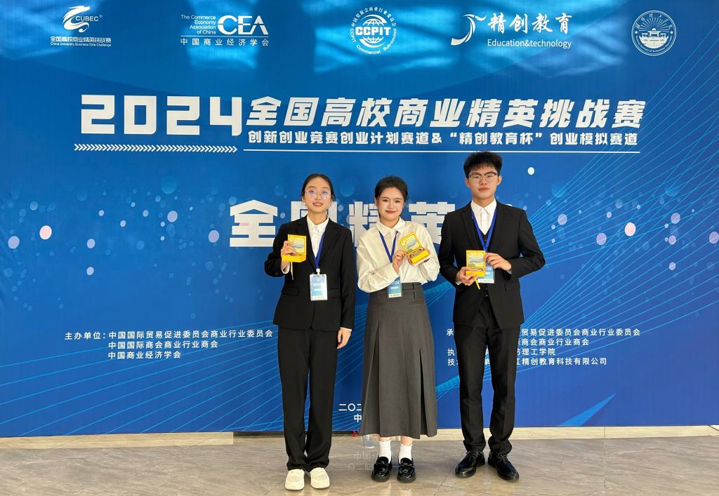 全国高校商业精英挑战赛创新创业竞赛是由中国国际贸易促进委员会商业行业委员会牵头,会同有关专业协会(学会)、事业单位联合主办,大赛的创新、创业赛道已连续两年纳入全国普通高校老员工竞赛排行榜目录。英国威廉集团官网何姝旸同学主持的项目“智电巡航——智能化电网管理解决方案商业先锋”和王韫涵、张哲浩同学参与的项目“绿色长兴—赤泥基固废材料综合利用全球领航者”获得赛事一等奖。