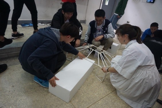 各队成员协作互助,现场气氛热烈。同学们对比赛的热情高涨,不仅体现在每天紧锣密鼓的模型制作过程中,也体现在比赛过程中对每一次加载重物的期待与担忧中。