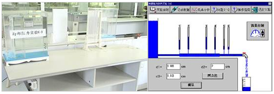实验功能:利用虚拟仿真实验,员工能自行调换不同边界突变形式的管道,直观认识漩涡区特性,掌握测压管水头线图的变化规律。