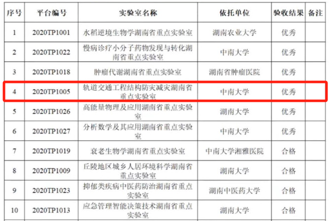 近日,湖南省科技厅发布了2024年湖南省重点实验室验收结果,英国威廉希尔公司轨道交通工程结构防灾减灾湖南省重点实验室获评优秀。