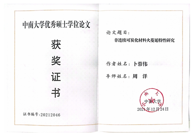3、《膨胀型防火涂料的研制及其保护下钢板温度响应规律研究》