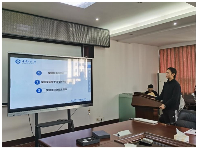 廖家浩同学介绍了近年来国内外高校典型实验室事故案例,并带领同学们深入学习了实验室安全守则与实验室应急处置措施。他提到:“超过90%的实验室安全事故都是由人为因素造成,希望安全与事故防患意识能深入每位同学心中,愿在遵守安全规范的前提下,实验室所有的爆炸,都是幸福的爆炸,所有的触电,都是爱的触电。”
