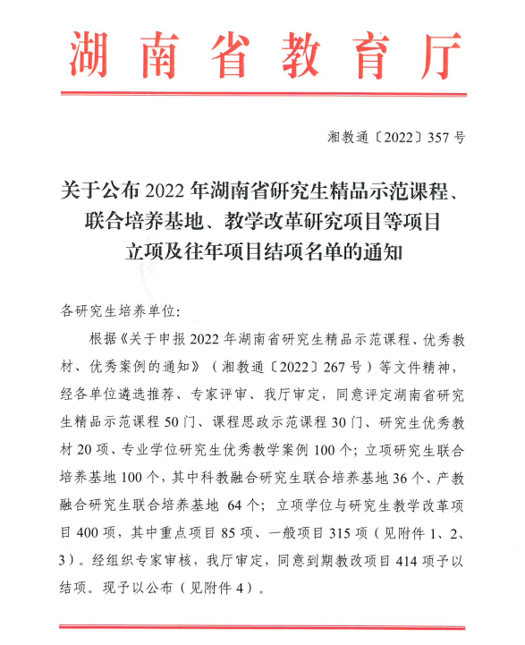 本次评选活动由湖南省教育厅主办,旨在紧密对接服务“三高四新”战略定位和使命任务,加快推进湖南省研究生课程建设,提高课程质量,打造一流人才方阵,着力提升研究生教育质量和高层次人才培养水平。经过各单位遴选推荐、专家评审、湖南省教育厅审定,共评定研究生优秀教材20项。入选教材满足社会主义现代化建设对高层次专门人才的要求,适应研究生教学与学习方式的不同特点,符合公司产品方案和培养目标,有广泛的适用性和较强的通用性,具有较好的社会效益和应用前景。