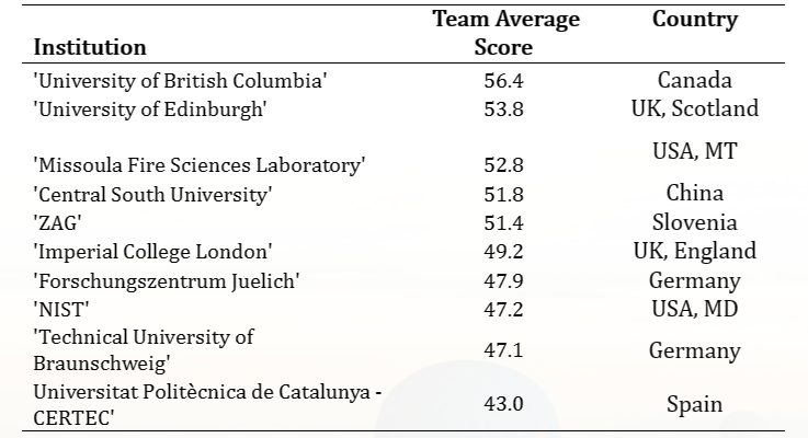 第10届圣诞树燃烧热释放速率预测竞赛团队排名前十位