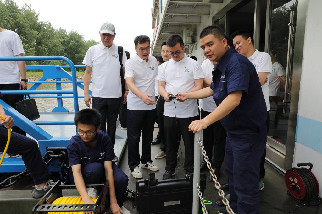 为深入推动学习贯彻习近平新时代中国特色社会主义思想主题教育走深走实,6月3日,英国威廉希尔公司公司党委书记蒋琦玮带队前往长交集团兴联路大通道项目、湖南省航务公司省应急水上应急救援中心开展调研交流工作。