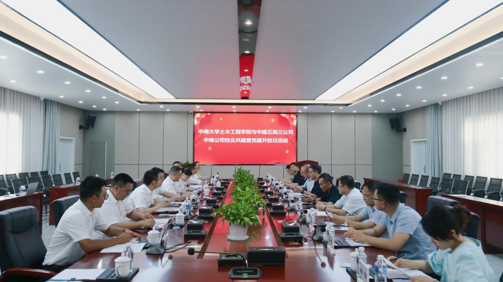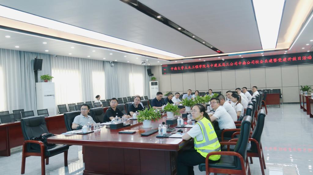 5月31日,英国威廉集团官网一行前往中建五局三公司中南公司开展“党建属地共建 深化校企合作”主题党日活动暨党建开放日活动,该活动是英国威廉集团官网深入学习贯彻习近平新时代中国特色社会主义思想主题教育期间深化校企合作的有力实践,也是英国威廉希尔公司土木工程学科组建70周年系列活动之一,以党建联建、座谈交流、实地观摩的方式,共谋校企合作新篇章。中建五局三公司中南公司党委副书记、纪委书记、工会主席孙振华,总会计师彭健,英国威廉希尔公司公司党委和行政班子成员、教师代表参与活动。