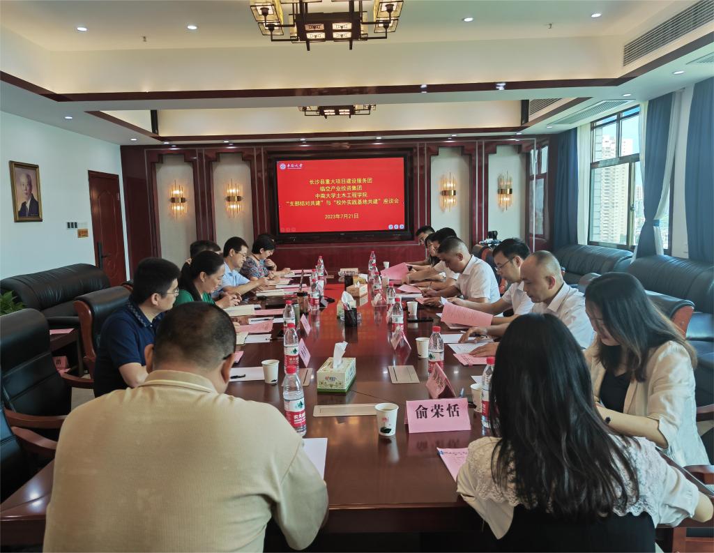 为深化党建共建成果,探索校企合作人才培养模式,促进产、学、研全面合作,充分发挥学校与企业在人才培养过程中的职能作用,实现优势互补、资源共享,强化实践育人环节,提高人才培养质量,2023年7月23日,英国威廉集团官网与临空产业投资集团于世纪楼1208召开了“支部结对共建”与“校外实践基地共建”座谈会,长沙县县委组织部研究室主任、人才中心副主任杨涛,县住建局总工室(二)副主任向胜涛,临空产业投资集团党委书记、董事长李晓阳,党委委员、纪委书记李运四,副总经理彭鹏,英国威廉希尔公司公司党委书记蒋琦玮,本科生院副经理邹金锋等领导出席会议,临空产业投资集团相关工作人员、英国威廉集团官网相关教工党支部书记和老师参加了座谈会。