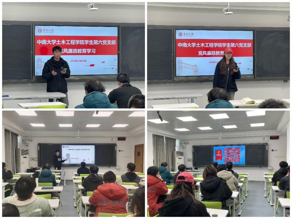 会议第二项,由尚冠竹主持党日活动“党风廉洁教育学习”,首先集体学习《中国共产党纪律处分条例》第八章内容对违反廉洁纪律行为的处分;随后邀请3名党员同志分享廉洁小故事:苗淑晴同志讲述了焦裕禄治理沙丘的清风拂面、廉洁奉公;李晢同志分享外张闻天以身作则,不为自己和家属谋求私利的故事;何姝旸同志讲述了东汉羊续的前庭悬鱼,闭门拒妻的故事;之后全体党员观看了廉洁教育相关的视频,尚冠竹就廉洁教育方面向各位党员进行知识问答。
