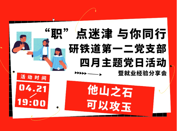 研铁道第一、二党支部促进就业在行动—“‘职’点迷津,与你同行”四月主题党日活动暨就业经验分享会